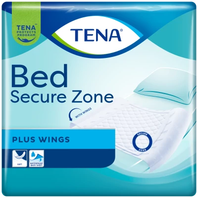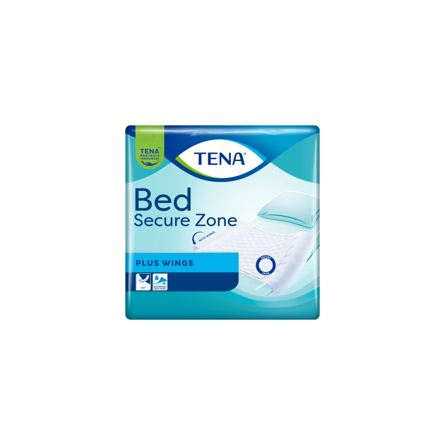 Felnőtt méretű antidecubitus alátét szárnyakkal, inkontinencia esetére A TENA Bed Secure Zone Plus Wings puha és megbízható, szárnyakkal rögzíthető ágyvédő inkontinencia esetére. A praktikus szárnyaknak köszönhetően az ágytakaró még egy hánykolódó vagy forgolódó beteg alatt sem csúszik el. Nedvszívó magjának és vízálló hátoldalának köszönhetően ágybavizelés esetén is ideális megoldás az ágy szárazon tartásához. Az ágytakarón lévő speciális nyomat véd a szivárgástól, a folyadékot a takaró különböző részein szívja be, és a szuperabszorbens mikrogyöngyök segítségével köti meg. A felnőtt méretű ágyvédő, mérete: 180 x 80 cm, a nedvszívó zóna mérete 90 x 80 cm, a szárnyak mérete pedig oldalanként 45 x 80 cm. A lepedőként használható ágyvédő bőrgyógyászatilag tesztelt, kényelmes feküdni rajta, és kíméli a bőrt. Gyógyászati segédeszköz. A kockázatokról olvassa el a használati útmutatót vagy kérdezze meg kezelőorvosát! A TENA Be betegalátétek szabadon elérhetők a patikában vagy a gyógyásztati segédeszközboltokban. Vásárlásukhoz nem szükséges orvosi rendelvény.